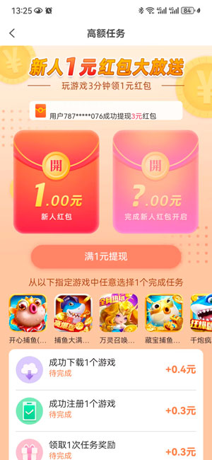 试玩赚钱软件,首次做任务可秒提0.3元。和