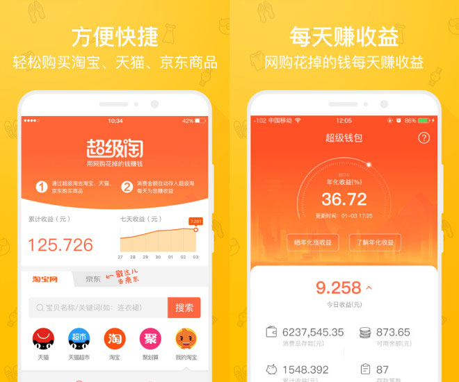 超级淘是一款网购消费存钱应用,用户在淘宝、天猫、京东购物花掉的钱,还能存入超级淘,每天拿利息!赶紧来超级淘开启全新网购赚钱时代。,超级淘专门为网购达人而设计,一个让你能让你用网购花掉的钱赚钱的APP。
