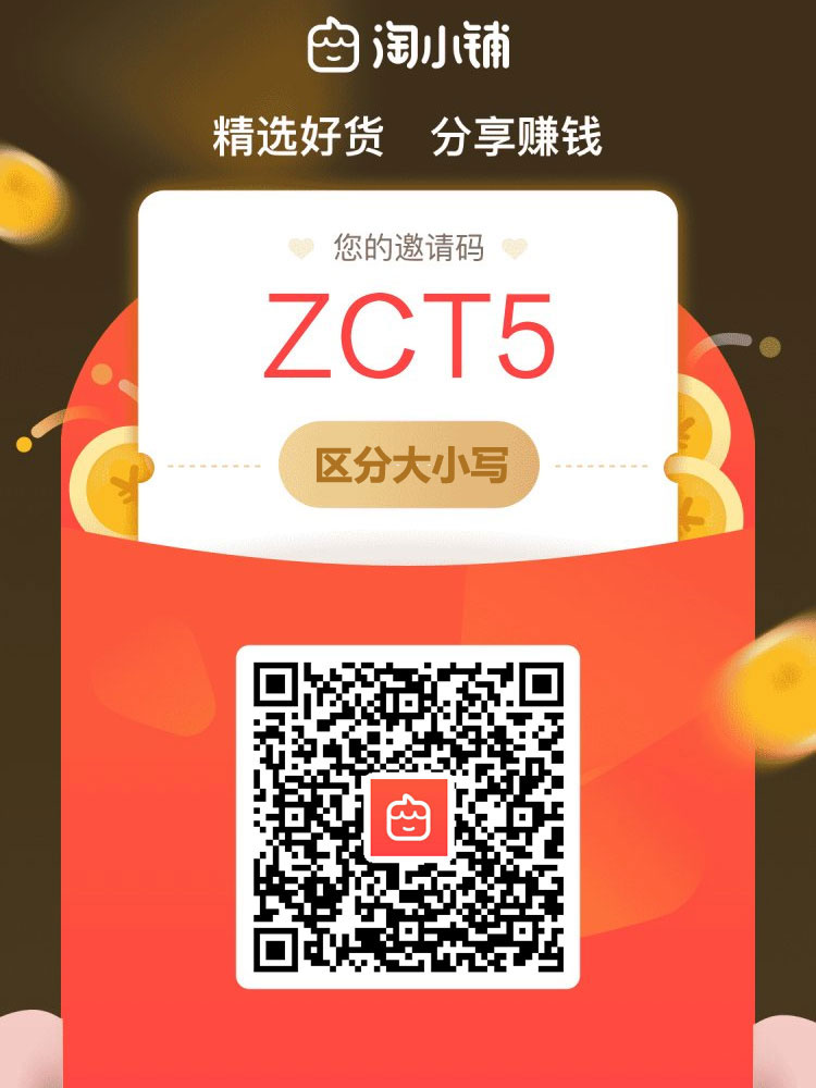 前往应用市场下载淘小铺APP,开店需要输入邀请码:ZCT5