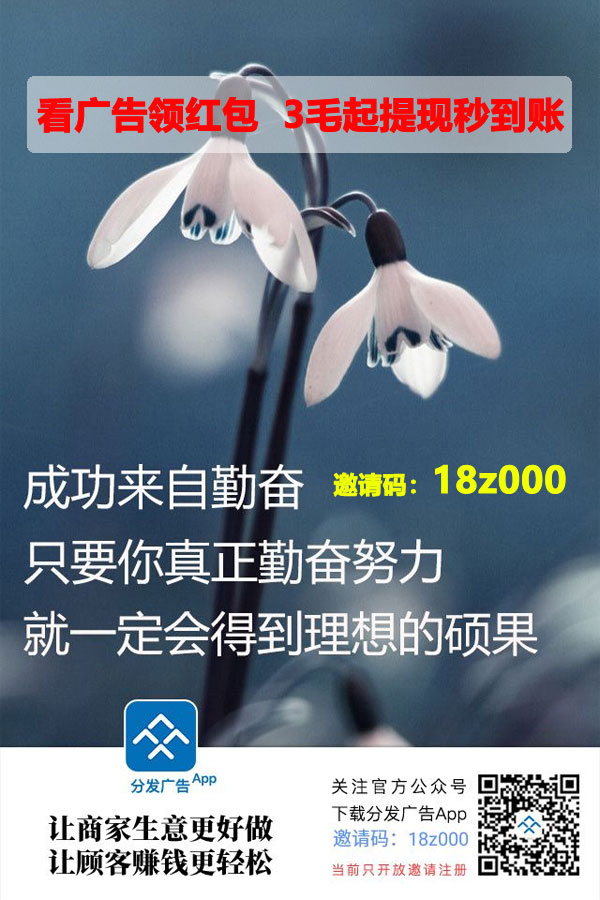 分发广告App【必填邀请码:18z000】,是河南分发广告传媒有限公司,自主开发的新媒体手机应用软件,目前只提供安卓版,该应用优化了传统广告行业的交易结构:将原有行业中受众被动无偿接受广告信息,变成了受众有偿主动接受广告信息。
