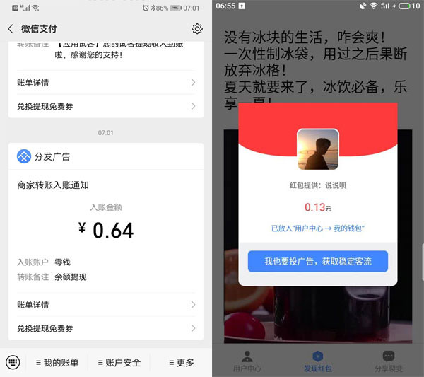 通过用户自助投放广告信息,看广告抢红包和用户分享机制,让商家快速获取客流,让顾客的闲暇时间变现,本着“顾客
