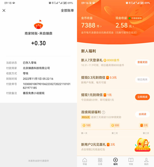 番茄小说免费听书看书还能领红包,新用户登录就能领2元,每天0.3就能提现,看书5分钟还能提现1元,提现秒到账。番茄小说是抖音推出的免费阅读产品,提供海量正版小说。免费好书,尽在番茄!还有金币福利,看书能挣钱!